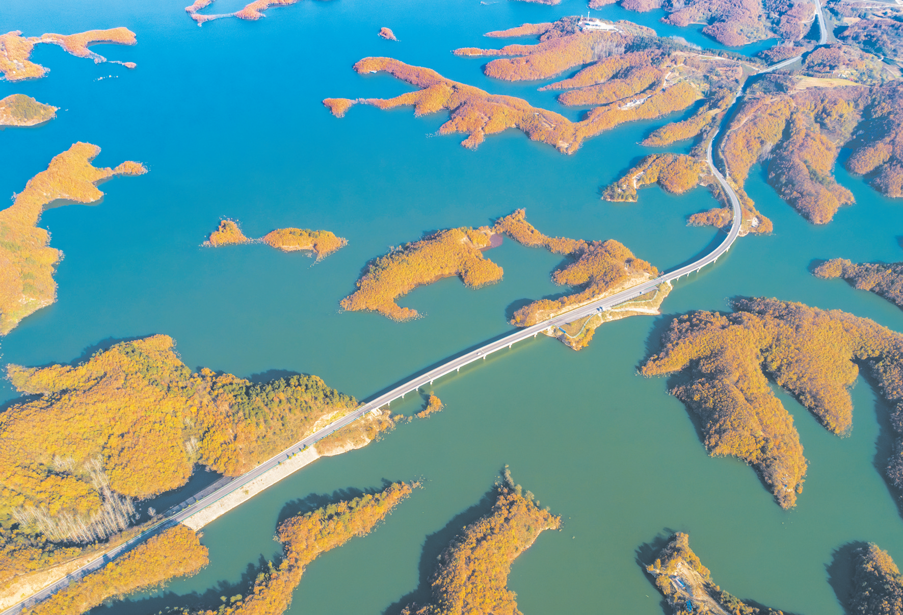 冬季的丹江口水库周边风景秀丽,山林多彩,水库水面清澈如镜,山水交融,宛如一幅画卷。供图:记者刘坤